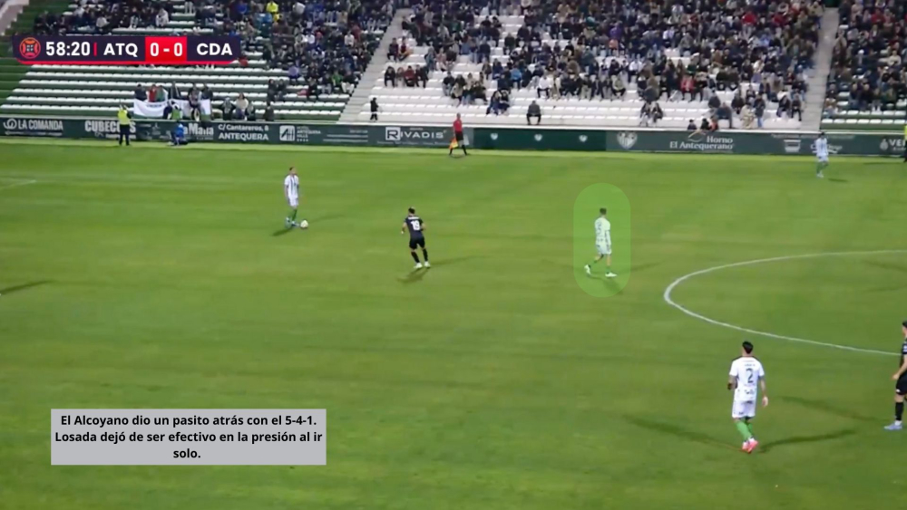 A pesar del desgaste que supone presionar alto a un equipo como el Antequera, pocos fueron los momentos de desajustes que sufrió el equipo. Chema y Luismi, jugadores de más calidad de los locales, no estuvieron cómodos en los primeros 45 minutos, gracias a ese gran trabajo defensivo del Alcoyano.